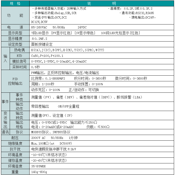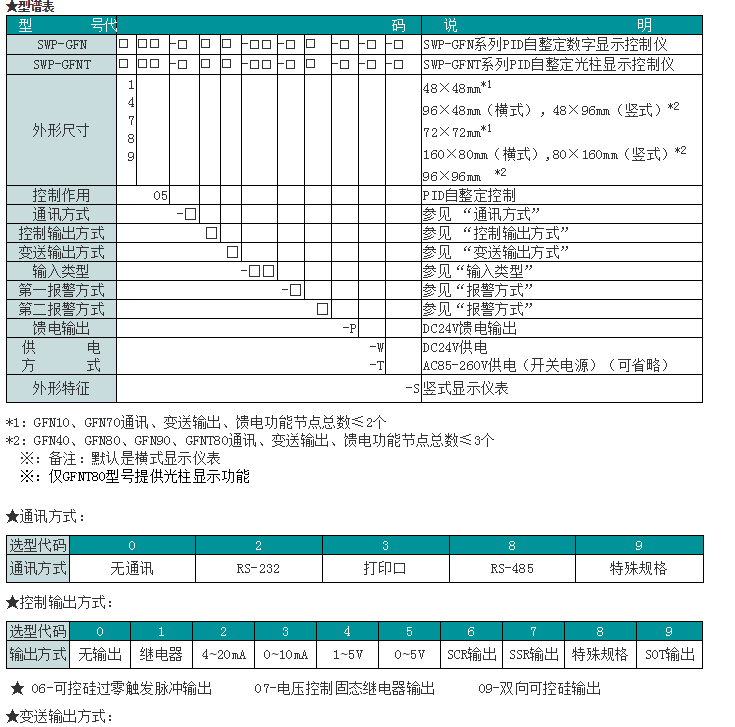 SWP-GFN系列PID自整定數(shù)字/光柱顯示控制儀適用于需要進(jìn)行高精度測量控制的系統(tǒng),可根據(jù)被控對(duì)象自動(dòng)演算出最佳PID控制參數(shù),集數(shù)字儀表與模擬儀表于一體,可對(duì)溫度、壓力、液位、速度等測量信號(hào)進(jìn)行數(shù)字量顯示控制(高亮度LED數(shù)碼顯示)及相對(duì)模擬量顯示(光柱顯示),使測量值的顯示更為清晰直觀。并可選擇雙光柱顯示方式。