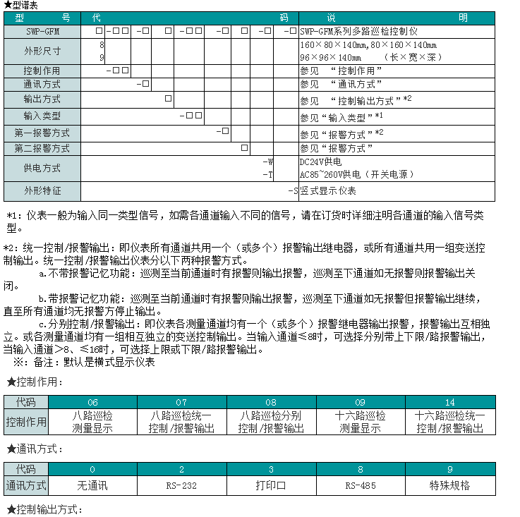 SWP-GFM系列多路巡檢控制儀用于工業(yè)控制系統(tǒng)多測量點的巡回檢測、顯示和報警。16通道全隔離輸入,可對溫度、壓力、液位、速度等測量信號進行數(shù)字量顯示控制(高亮度LED數(shù)碼顯示),使測量值的顯示更為清晰直觀。