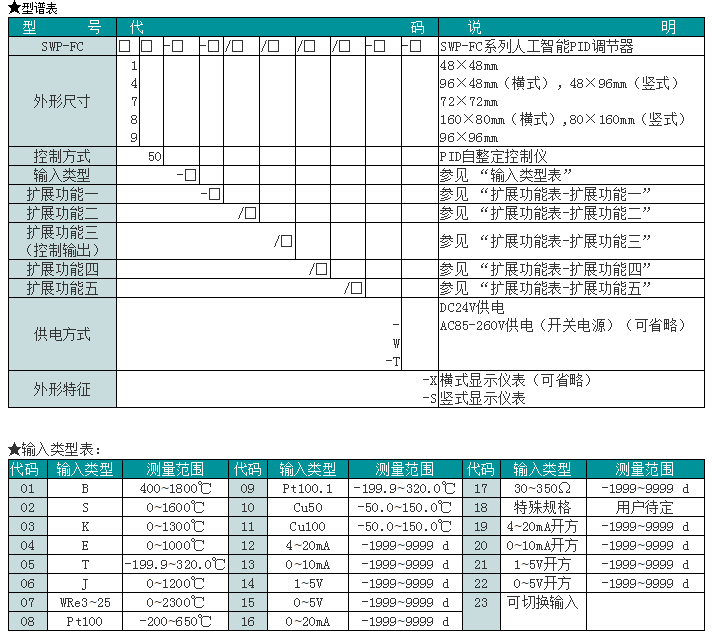 SWP-FC150,SWP-FC450,SWP-FC750,SWP-FC850,SWP-FC950,人工智能自整定PID調(diào)節(jié)器