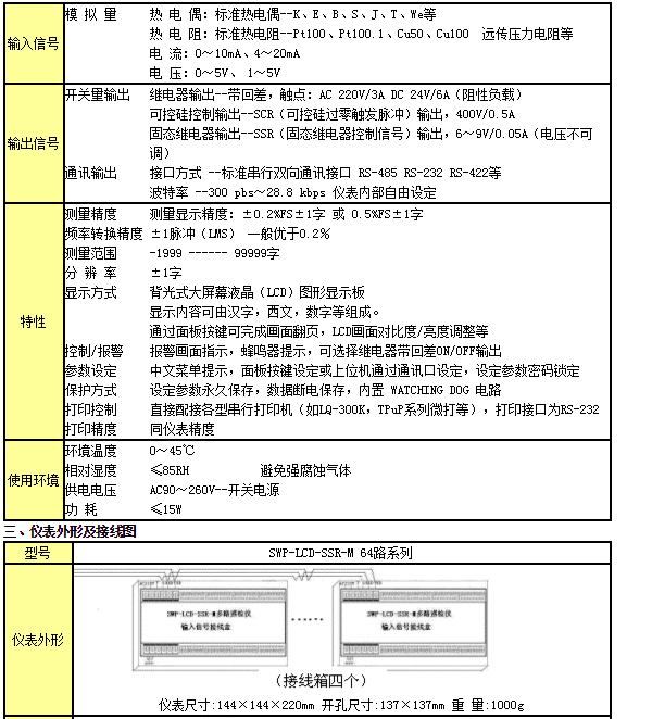 SWP-LCD-SSR-M智能化64路巡檢儀是一種智能化多功能二次儀表,適合于對多輸入回路進行巡回檢測,報警控制及數(shù)據(jù)遠傳。
