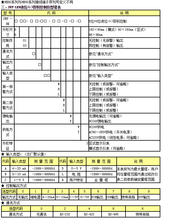 型號(hào): SWP-HK801-22,SWP-HK801-24,SWP-HK903-92,SWP-HK903-94,液位/容積控制儀