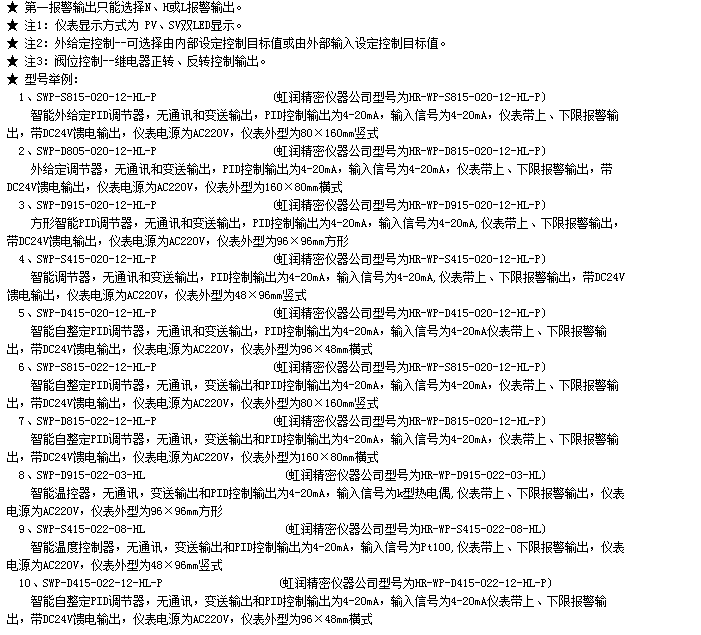 SWP-LED系列PID自整定控制儀/PID光柱顯示控制儀表集數(shù)字儀表與模擬儀表于一體,可對溫度、壓力、液位、速度等測量信號進(jìn)行數(shù)字量顯示控制(高亮度LED數(shù)碼顯示)及相對模擬量顯示(光柱顯示),使測量值的顯示更為清晰直觀,并可選擇雙光柱顯示。