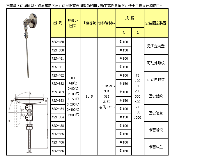 WSS-480,WSS-482,WSS-484,WSS-486,雙金屬溫度計(jì)