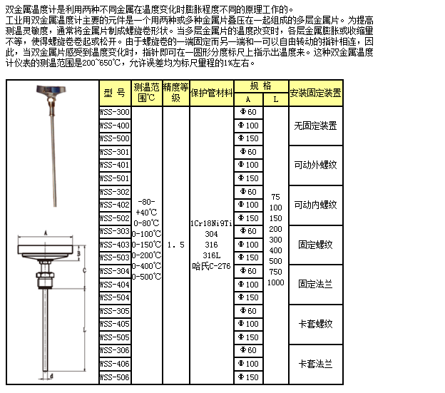 WSS-300,WSS-302,WSS-304,WSS-306,軸向型雙金屬溫度計