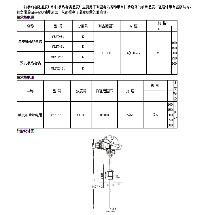 WRNT-31,WRET-31 WRNT2-31,WRET2-31,WZPT-31,軸承溫度計(jì),熱電偶,熱電阻