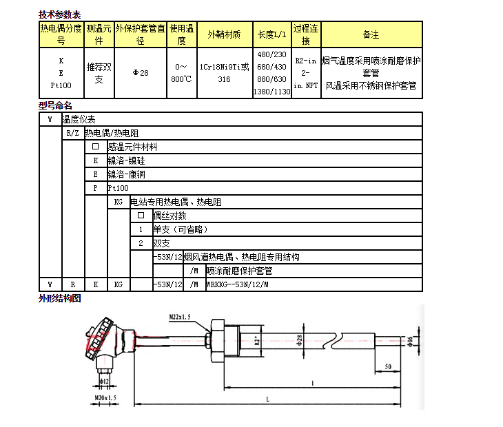 WRKKG-53N/12M,WRKKG-253N/12M,WREKG-53N/12M,煙風(fēng)道熱電偶、熱電阻