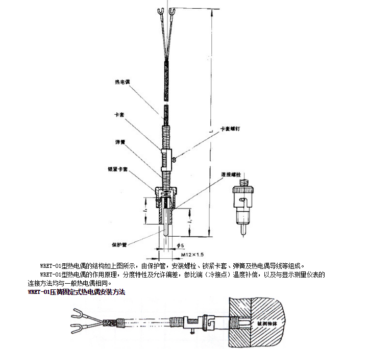 WRET-01壓簧固定式熱電偶結(jié)構(gòu)原理