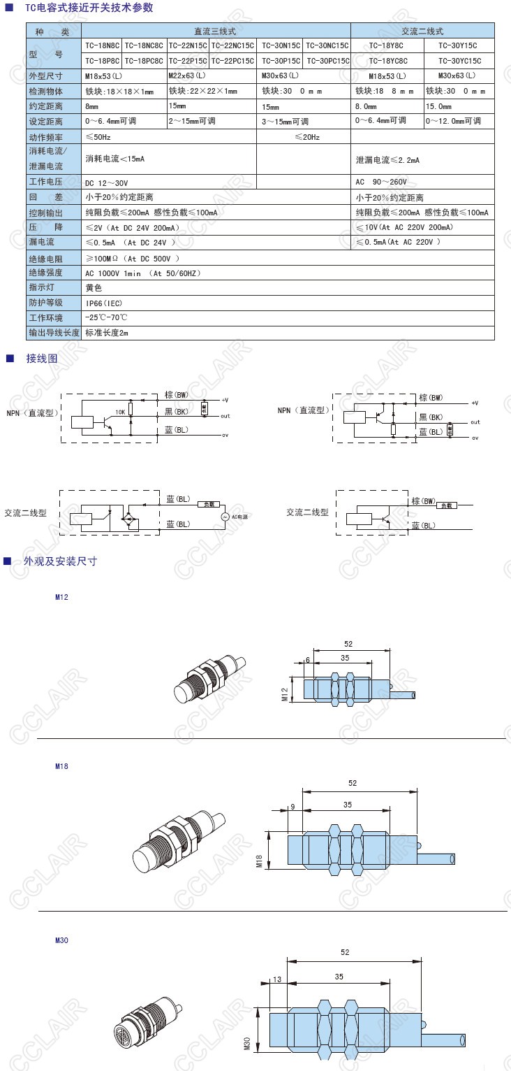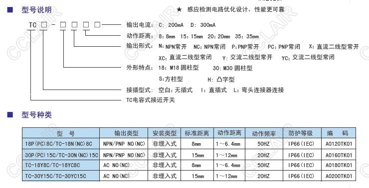 18P(PC)8C/TC-18N(NC)8C,30P(PC)15C/TC-30N(NC)15C,TC-18Y8C,TC電容式接近開關(guān)