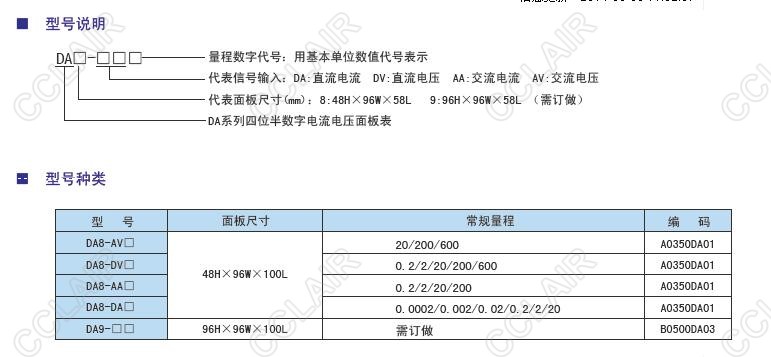 DA8-AV20,DA8-AV200,DA8-AV600,DA8-DV20,DA8-DV200,DA8-DV600,DA8四位半單顯示測量電流電壓表