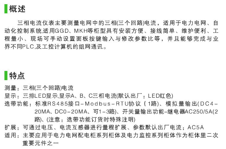 二、數(shù)顯三相電流表產(chǎn)品特點