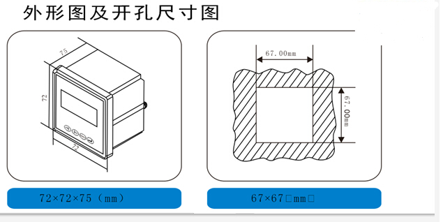 PD204U-AK4,智能三相電壓表 產品概述 72方形    外形:72*72mm    開孔:67*67mm