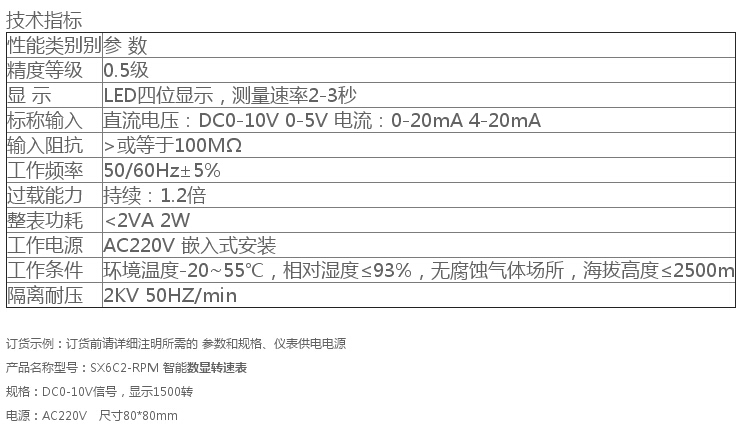 SX6C2-RPM變頻器專用智能數(shù)顯轉速表.頻率表,通過測量變頻器輸出的DC0-10V 0-5V或4-20mA,0-20mA,模擬量信號,來顯示變頻器輸出的轉速或頻率。適用于機械設備.機電設備.自動化設備.變頻器控制柜等,是變頻器配套使用的最佳產品。