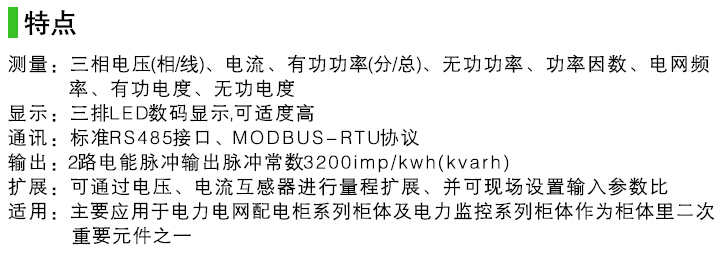 功能:三相電流 三相電壓 頻率 有功功率 無功功率 功率因數(shù)