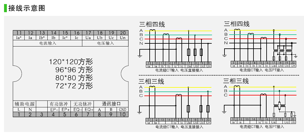 視在功率 有功電能 無功電能(計(jì)量)RS485通訊 三排LED數(shù)碼管顯示,96*96mm外形