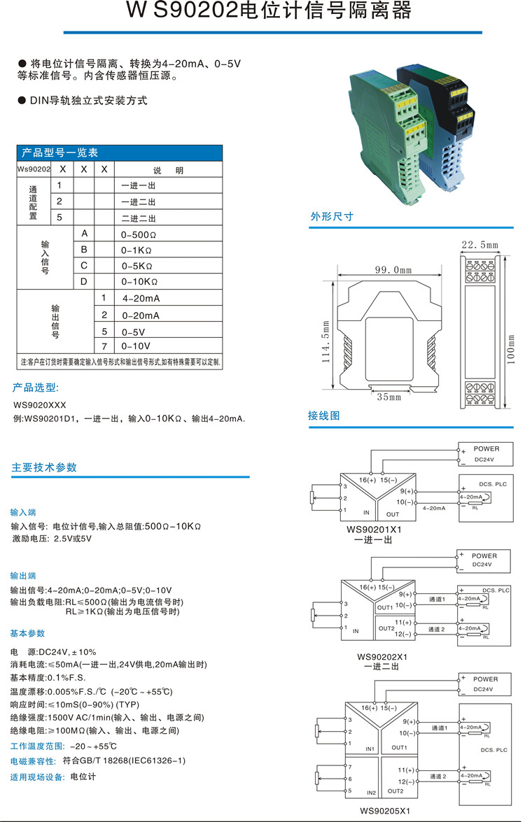 WS9020-1B1,WS90502,熱電阻溫度信號(hào)調(diào)理器 隔離器.