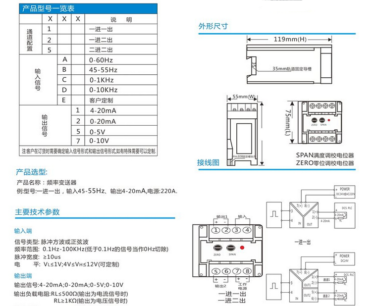 JA9774F-A頻率變送器輸出范圍:DC4-20mA、0-20mA、0-5V、0-10V、1-5V等用戶需要的標準信號
