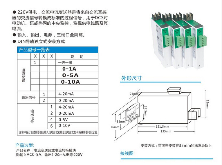 HD2841-7B0電流變送器輸入范圍:AC0-5A、標(biāo)準(zhǔn)信號(hào)