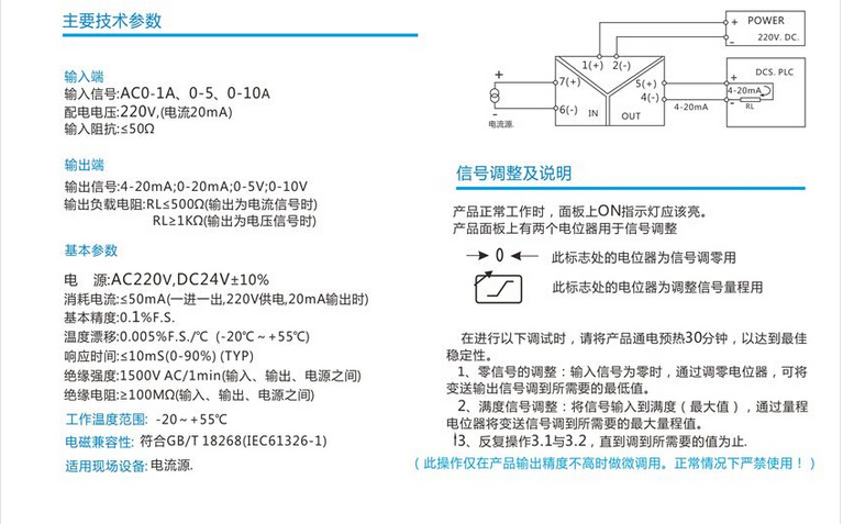 HD2841-7B0電流變送器輸出范圍:DC4-20mA、0-20mA、0-5V標(biāo)準(zhǔn)模擬信號(hào)
