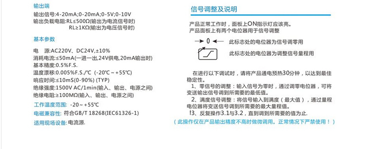 BS-2全隔離信號(hào)調(diào)理器  輸出范圍:4-20mA、標(biāo)準(zhǔn)信號(hào)