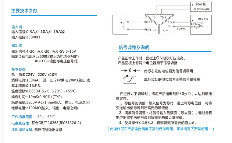 直流電流變送器輸入范圍:DC0-5A、DC0-1A、DC0-10A,DC0-20A等用戶特定規(guī)格
