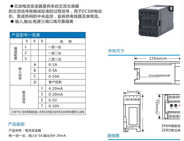JA97741-1-2電流變送器 詳細(xì)參數(shù)規(guī)格說(shuō)明書和接線方式