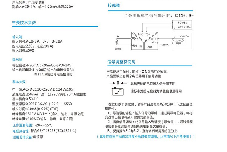 HA60電流變送器、電源AC/DC220V、 精度0.5%級(jí)