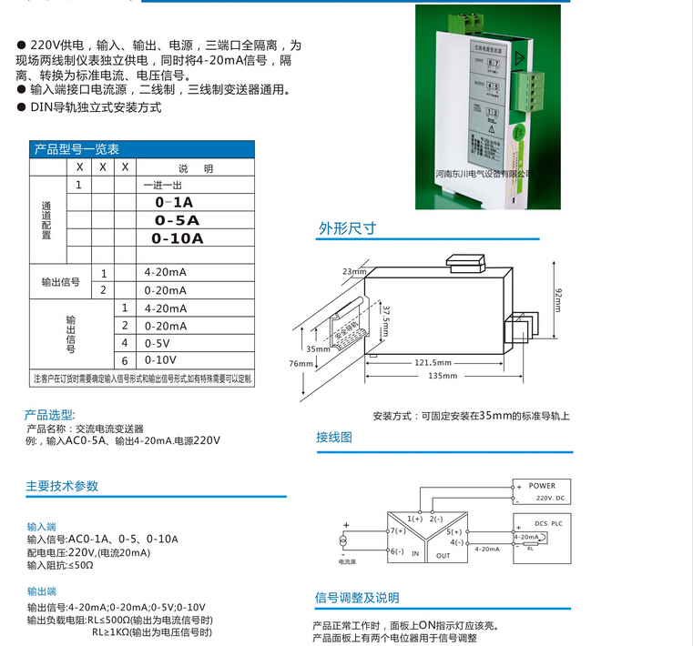 交流電流變送器輸入范圍:AC0-5A、0-1A、0-10A等用戶特定規(guī)格