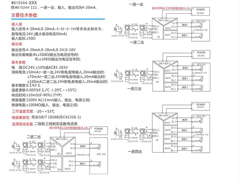 WS15244信號隔離器分配器,全隔離信號分配器 隔離柵,信號隔離器模塊,安全柵,電流轉(zhuǎn)換模塊。將輸入信號變換為兩路相互隔離的信號,低功耗,低熱量,低漂移,DIN T型導(dǎo)軌安裝