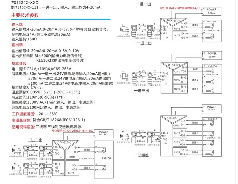 WS15242信號隔離器,隔離柵、安全柵,全隔離輸出信號分配器 隔離柵,信號隔離器模塊,安全柵,電流轉(zhuǎn)換模塊。將輸入信號變換為兩路相互隔離的信號,低功耗,低熱量,低漂移,DIN T型導(dǎo)軌安裝