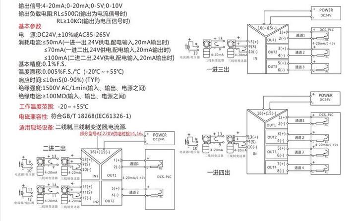 信號(hào)隔離器 分配器 輸入范圍:0-10V、4-20mA、0-20mA、0-5V、0-75mV,等用戶特定規(guī)格