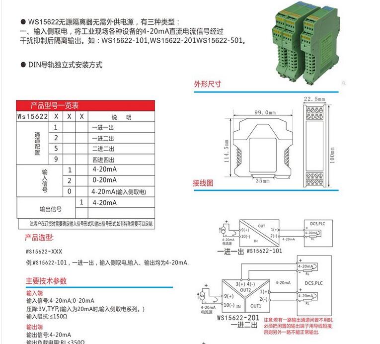 WS15622無(wú)源電流轉(zhuǎn)換模塊,電流分配器,全隔離信號(hào)隔離器,將輸入的四路信號(hào)隔離輸出,無(wú)需外接電源可正常工作,輸入輸出隔離,傳輸精度高,標(biāo)準(zhǔn)DIN T型導(dǎo)軌安裝
