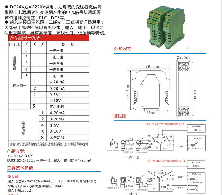 WS15242全隔離輸出信號分配器 安全隔離柵,信號隔離器模塊,安全柵,電流轉(zhuǎn)換模塊。