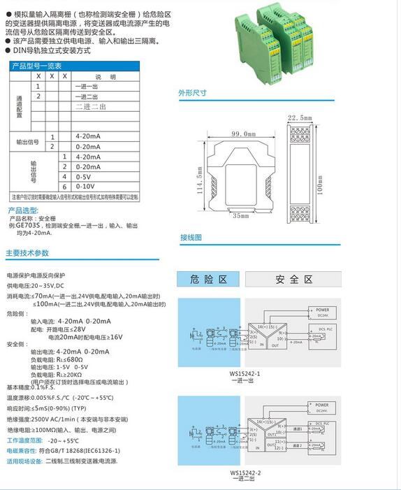 檢測端安全柵 隔離式安全柵 詳細技術(shù)參數(shù)及接線方式