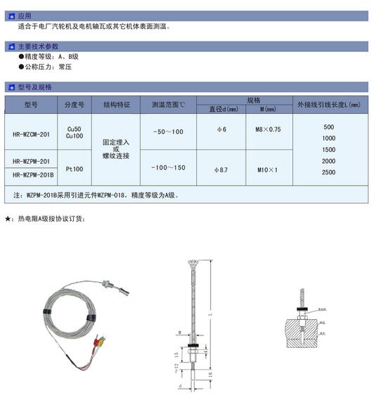 適合于電廠汽輪機及電機軸瓦或其它機體表面測溫。