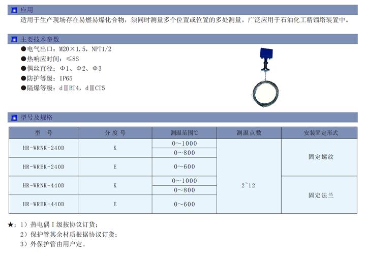 HR-WR,HR-WRNK-2400,HR-WREK-2400,HR-WRNK-4400,HR-WREK-4400,多點(diǎn)隔爆熱電偶