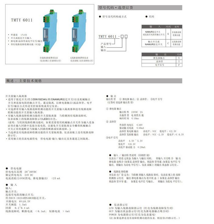 TMTY6011, TMTY-6011-KS,TMTY-6011-KT,TMTY-6011-KP,開關量輸入隔離器