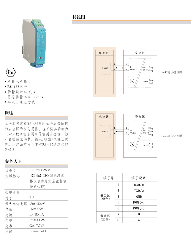 輸入類型:RS-485半雙工數(shù)字信號(hào)