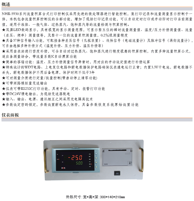 NHR-5930,流量積算臺(tái)式打印控制儀