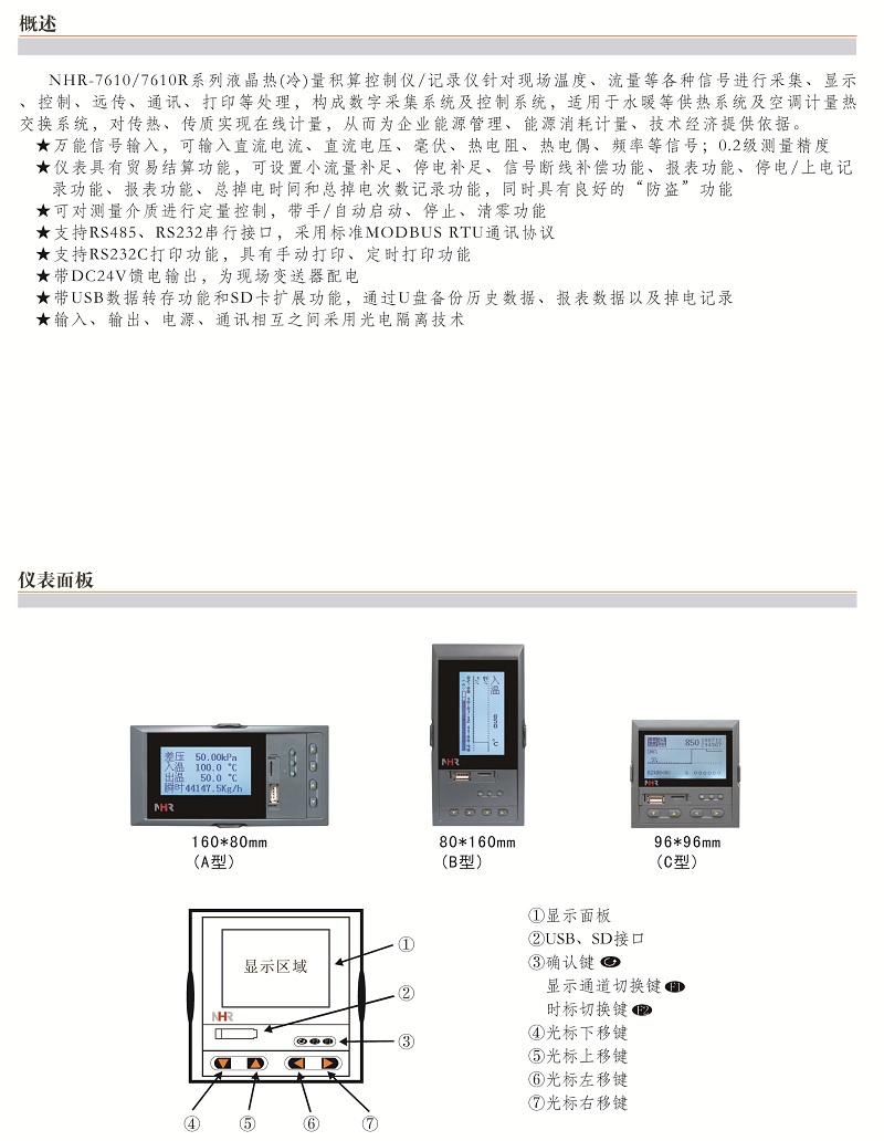 NHR-7610/7610R,液晶熱(冷)量積算控制儀