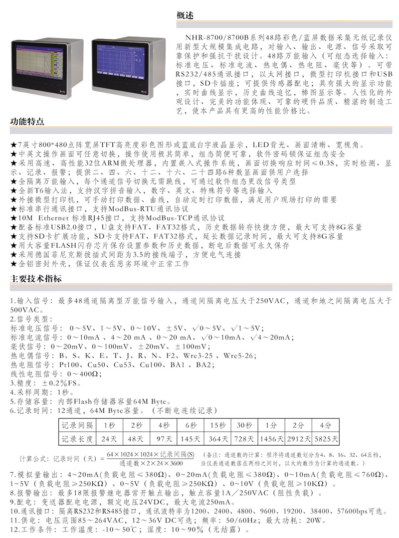 NHR-8700/8700B48路彩色/藍屏數(shù)據(jù)采集無紙記錄儀產(chǎn)品型號:NHR-8700/8700B系列輸入類型:48路萬能輸入輸出類型:報警+變送輸出+通訊輸出+饋電