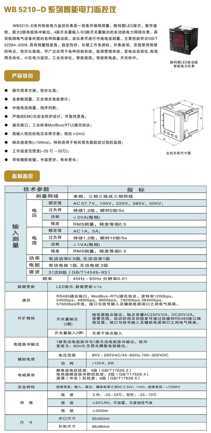 主要功能:單相全電量、電能及1路有功電能脈沖輸出