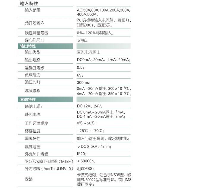 輸入規(guī)格:AC 0-500A范圍可選