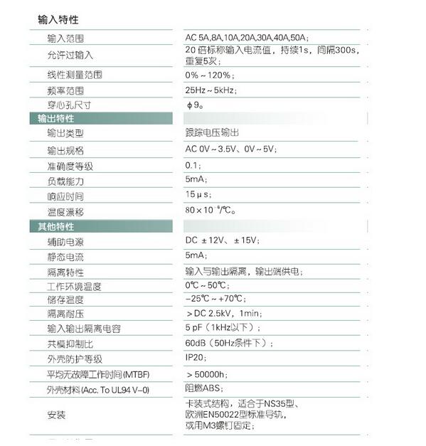 輸入規(guī)格:AC 0-50A范圍可選