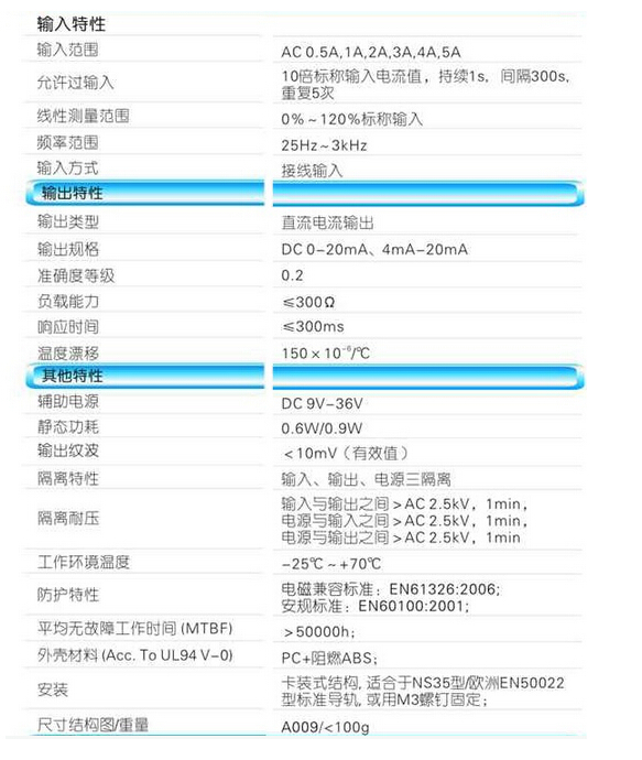 輸入規(guī)格:AC 0-5A范圍可選