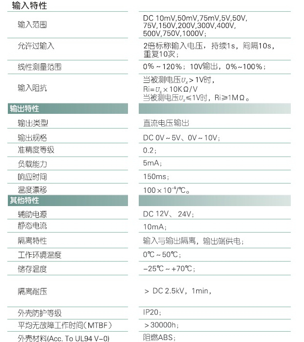 輸入規(guī)格:DC 10mA~1000V范圍可選