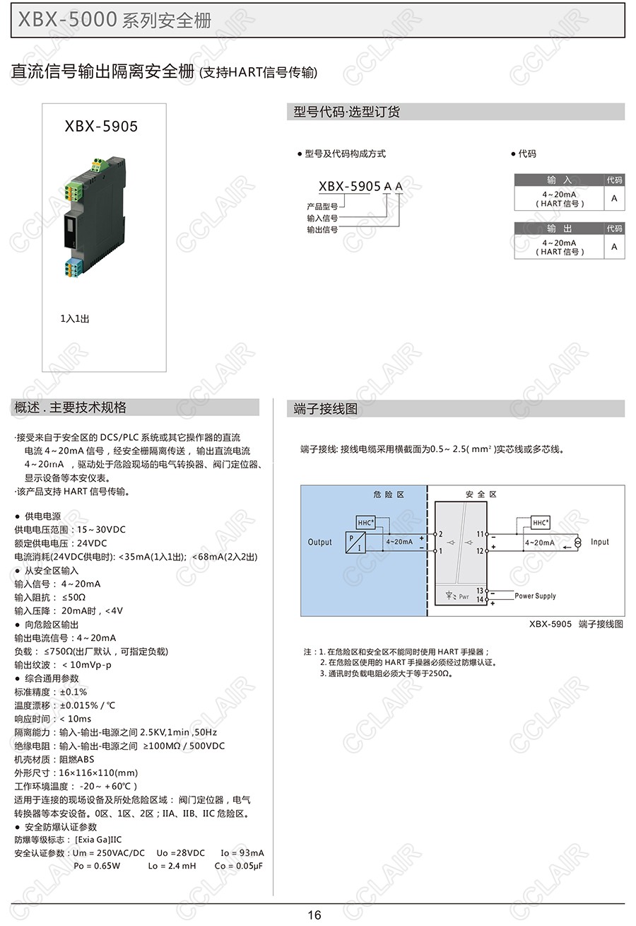 XBX-5905,XBX-5905AA,直流信號(hào)輸出隔離安全柵(支持HART信號(hào)傳輸)