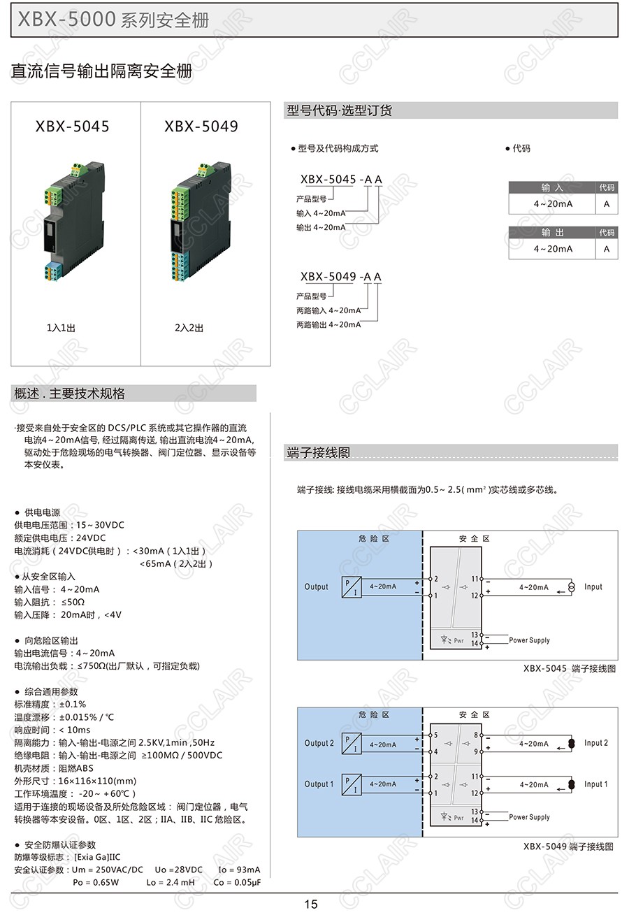 XBX-5045,XBX-5045AA,XBX-5049,XBX-5049AA,直流信號輸出隔離安全柵(一入一出、二入二出)