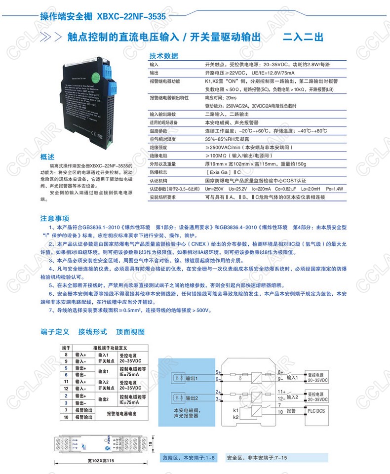 XBXC-22NF-3535,檢測端安全柵開關(guān)量驅(qū)動(dòng)輸出(二入二出)