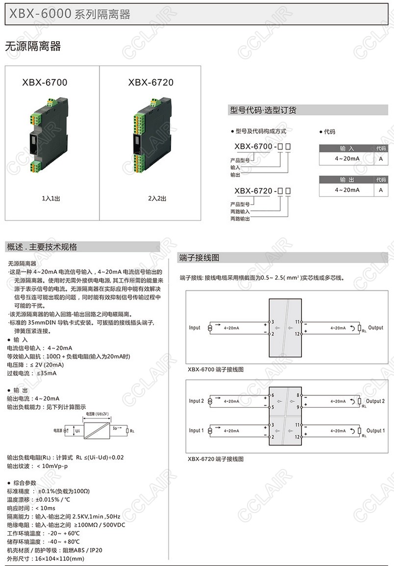 XBX-6700,XBX-6700AA,XBX-6720,XBX-6720AA,無(wú)源隔離器(一入一出、二入二出)