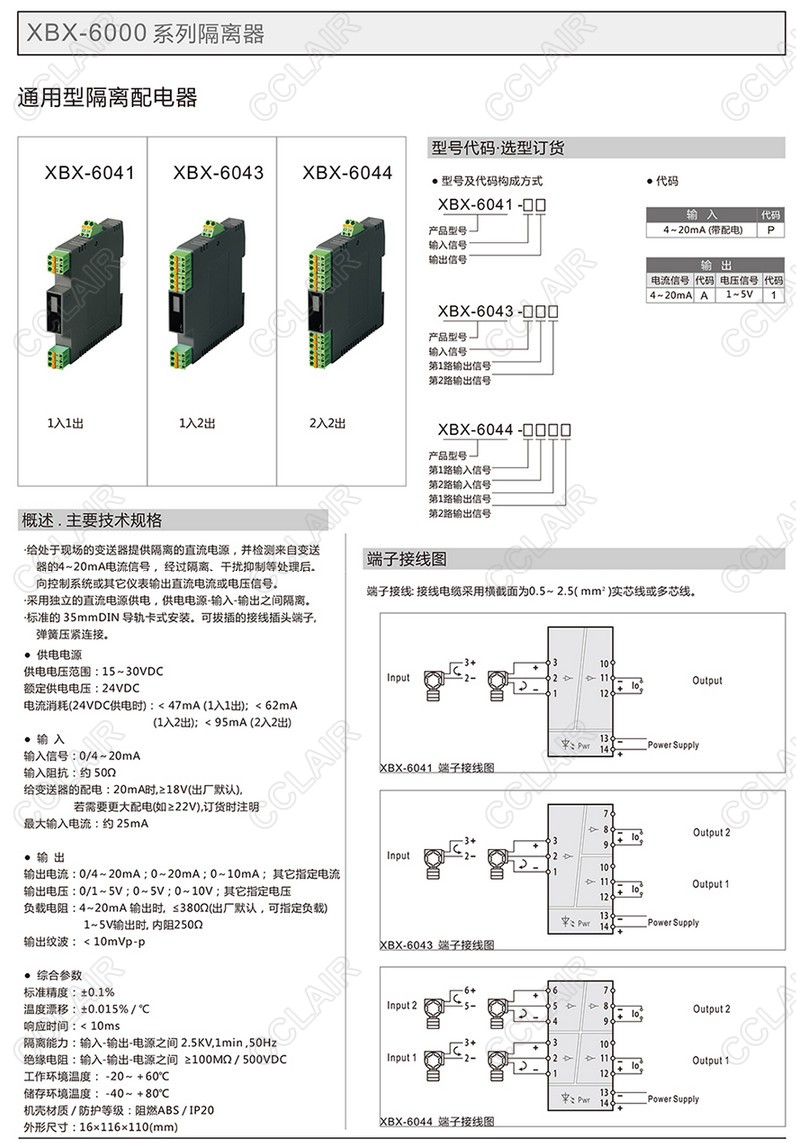 XBX-6000,XBX-6041,XBX-6043,XBX-6044,XBX-6041P1,XBX-6043P1,XBX-6044P1,通用型隔離配電器(一入一出、一入二出、二入二出) |